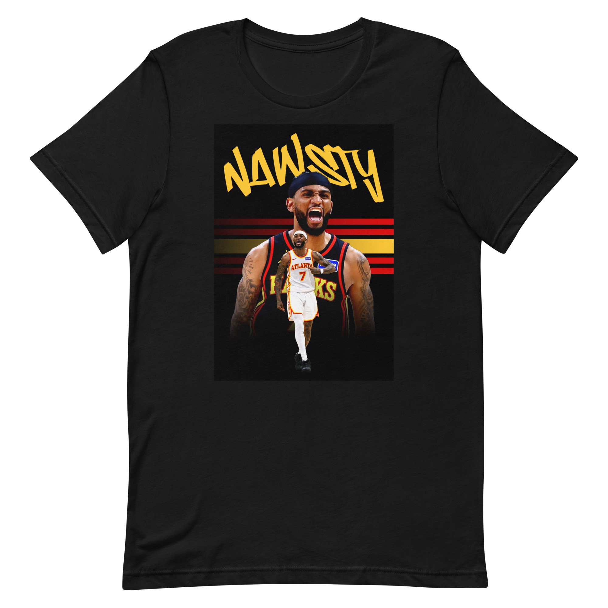 Shop - Price Design Club › Nawsty ATL Hoops Tee Image 1 of 1 Nawsty ATL Hoops Tee from $30.00 This tee hits just right before the playoffs! • 100% combed and ring-spun cotton (Heather colors contain polyester) • Fabric weight: 4.2 oz./yd.² (142 g/m²) • Pre-shrunk fabric • Side-seamed construction • Shoulder-to-shoulder taping • Blank product sourced from Nicaragua, Mexico, Honduras, or the US Disclaimer: The fabric is slightly sheer and may appear see-through, especially in lighter colors or under certain lighting conditions. Size: Select Size XS S M L XL 2XL 3XL 4XL 5XL Add To Cart Added! This tee hits just right before the playoffs! • 100% combed and ring-spun cotton (Heather colors contain polyester) • Fabric weight: 4.2 oz./yd.² (142 g/m²) • Pre-shrunk fabric • Side-seamed construction • Shoulder-to-shoulder taping • Blank product sourced from Nicaragua, Mexico, Honduras, or the US Disclaimer: The fabric is slightly sheer and may appear see-through, especially in lighter colors or under certain lighting conditions.